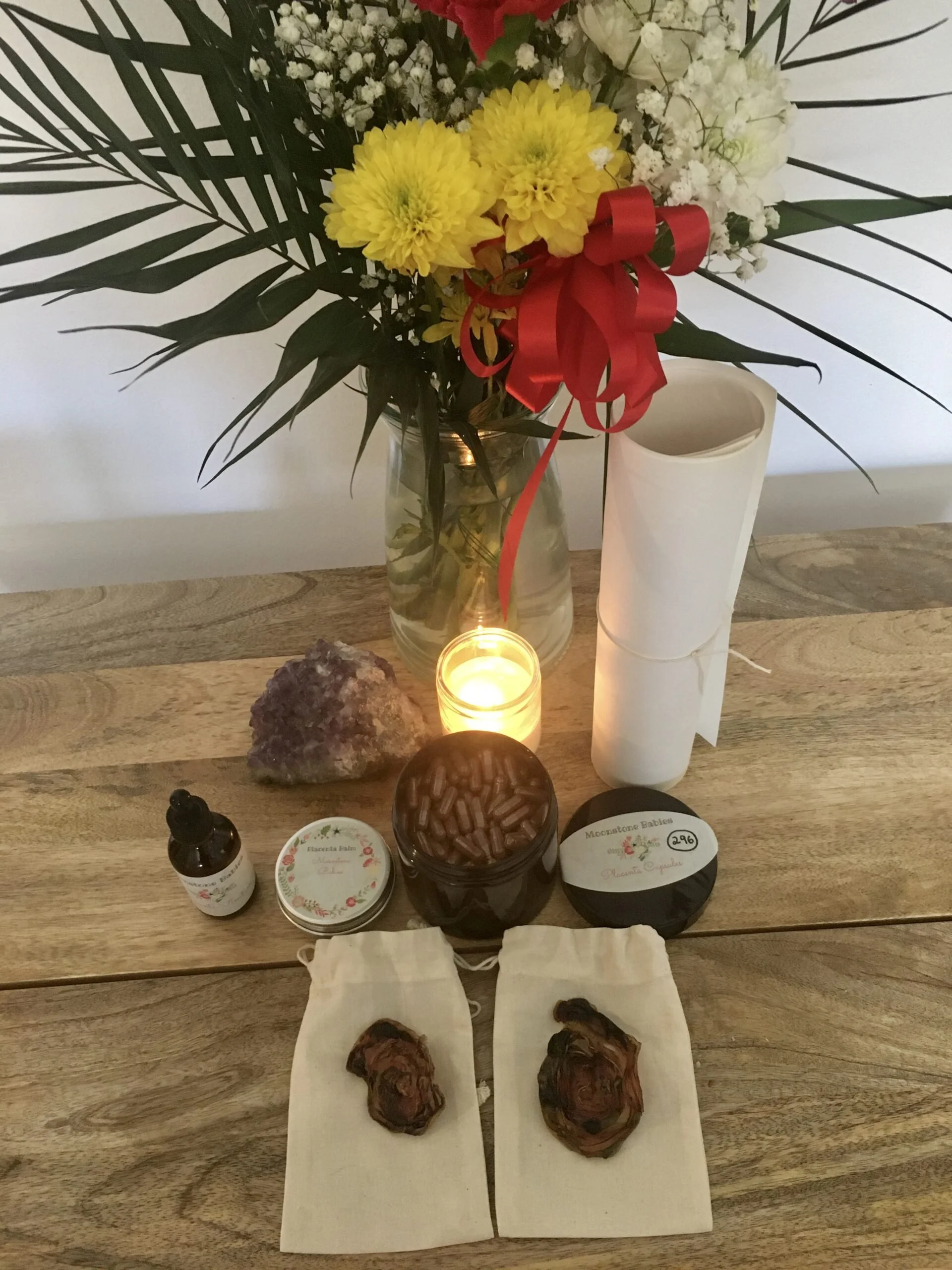 Your baby’s placenta contains your own natural hormones, is perfectly made for you, balances your system, replenishes depleted iron, gives you more energy, lessens bleeding postnatally, shown to increase milk production, helps you have a happier postpartum period, returns uterus to pre-pregnancy state, is helpful during menopause and shortens healing time.